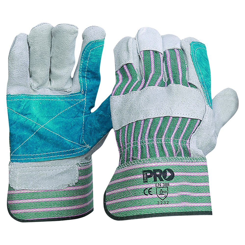 Heavy duty cow split leather reinforced palm, thumb and forefinger for extended toughness and durability