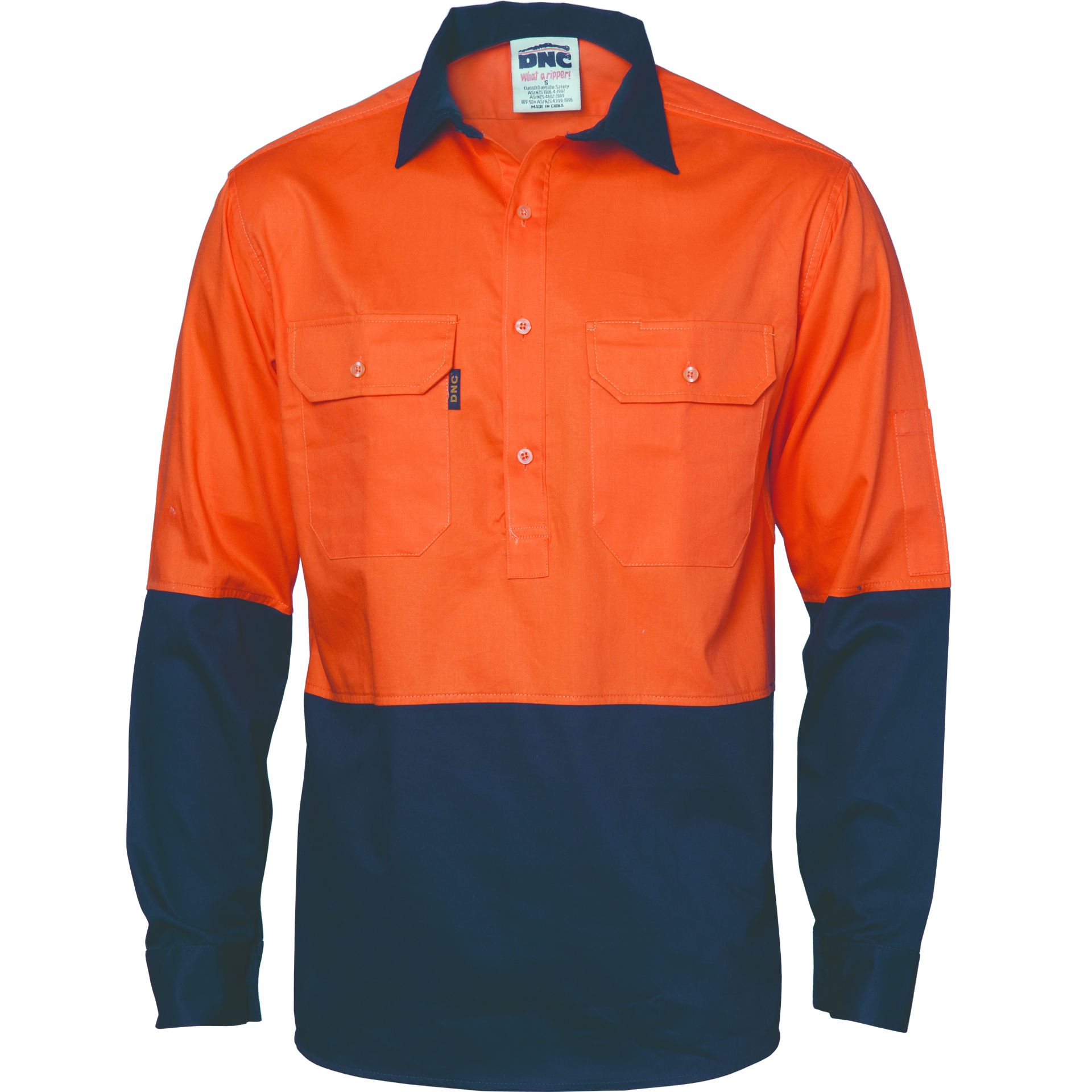 Hi-Vis 2-Tone Closed Front Two Weight (Welders) Long Sleeve Shirt - Full Gusset Cuff