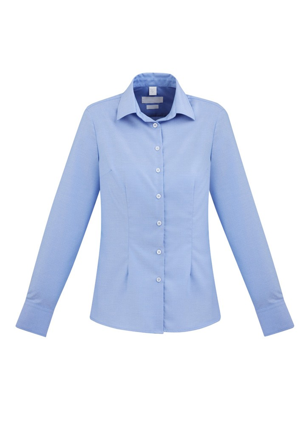 - Bust darts, waist shaping and neatly finished placket